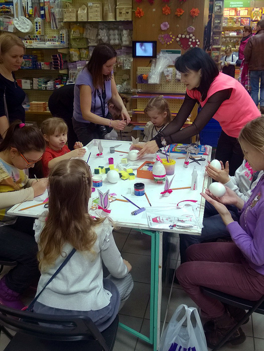 Когда праздничное меню составлено, цвета для яиц выбраны, мука для кулича куплена, приходит время для несъедобного творчества. Предпасхальный творческий мастер-класс уже становится доброй традицией, а в этом году он состоялся в большинстве сети магазинов «Белый Кролик».