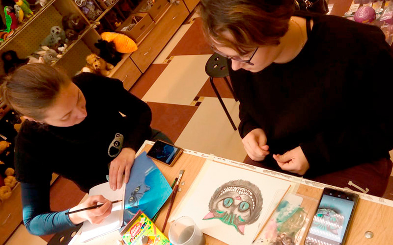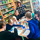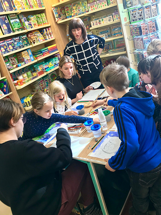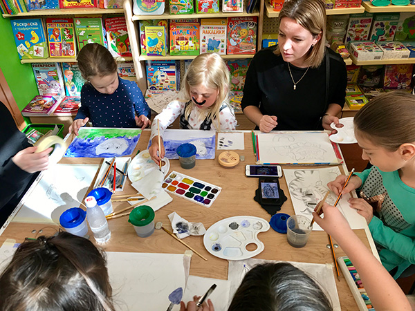 В течение всего марта в магазине на Тёплом Стане проходила серия занятий для начинающих художников. Опытный преподаватель Мария Зозуля делилась секретами живописи со всеми желающими. На предыдущих занятиях была освоена техника рисования пастелью и карандашами. Теперь очередь дошла до акварели.