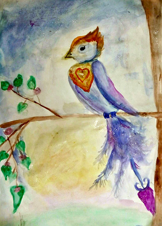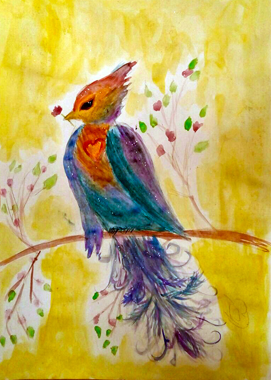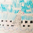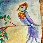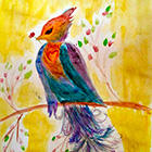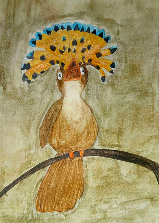 На занятиях в Тёплом Стане мы рисовали не только котов, но и птиц, лошадей, тигрят и кроликов. Вот посмотрите, какие сказочные венценосные мухоеды получились у юных художников!