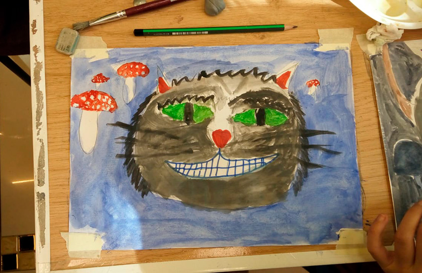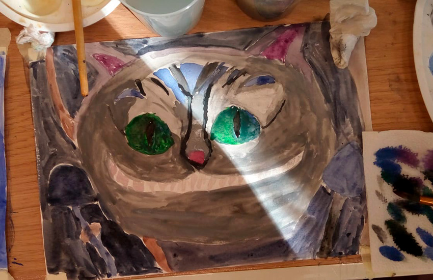 Таинственный и загадочный Чеширский кот наделён магической силой. У него много разных широких улыбок, которые с лёгкостью меняются в зависимости от настроения: от хорошего до отличного :) И каждому он дарит свою неповторимую. В акварели дети и взрослые нарисовали этого весёлого обитателя Зазеркалья таким, каким себе его представляют.