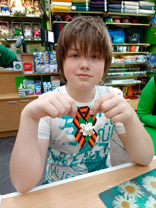 А на другом мастер-классе ребята делали замечательную поделку к 9 мая – брошь. Получились просто чудесные сувениры к важному памятному дню. Не расстраивайтесь, если вы не смогли побывать там лично, мы приготовили пошаговую инструкцию, следуя которой, вы легко смастерите брошь ко Дню Победы дома!
