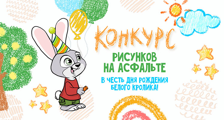 Объявляем Большой конкурс рисования мелками на асфальте в честь Дня рождения Белого Кролика! Авторы лучших работ получат замечательные призы!