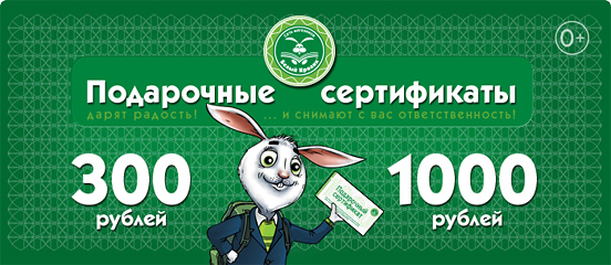 Дарите свободу выбора с новыми сертификатами от Белого Кролика на 300 или 1000 рублей!